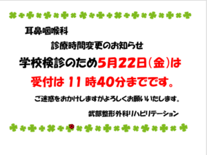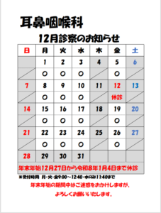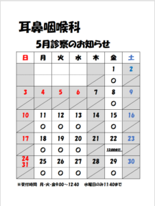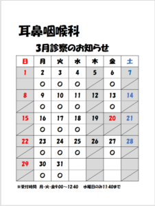 ▲:耳鼻咽喉科の水曜日は12:00までの診療となります。